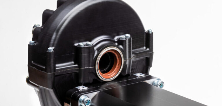 The units have also been designed to maximize installation flexibility and to this end the aluminum casings feature multiple M8 threaded mounting points, while the transmission output drive flanges are of a universal design. Intended to operate at around 350V, the e-motors used in the system are radial flux, IPM units with cooling provided by a liquid glycol-distilled water mix, which can be on a shared circuit with the inverters. The most powerful 240L setup weighs in at 65kg.
