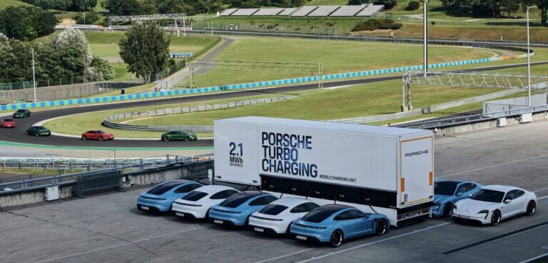 Charging electric vehicles in locations where electricity infrastructure may be lacking can prove challenging. In the case of Porsche, which is running a number of track experiences with its latest Taycan EV, the company has developed seven mobile charging trucks, in conjunction with German firm ads-tec.