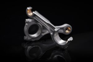 This high power out has been achieved by using several motorsport-oriented solutions. These include, for the first time on a road bike, gun-drilled titanium connecting rods that have a 1.6mm diameter hole drilled longitudinally along the rod. This enables oil to pass from the head to the small end, improving lubrication and reliability under harsh conditions.